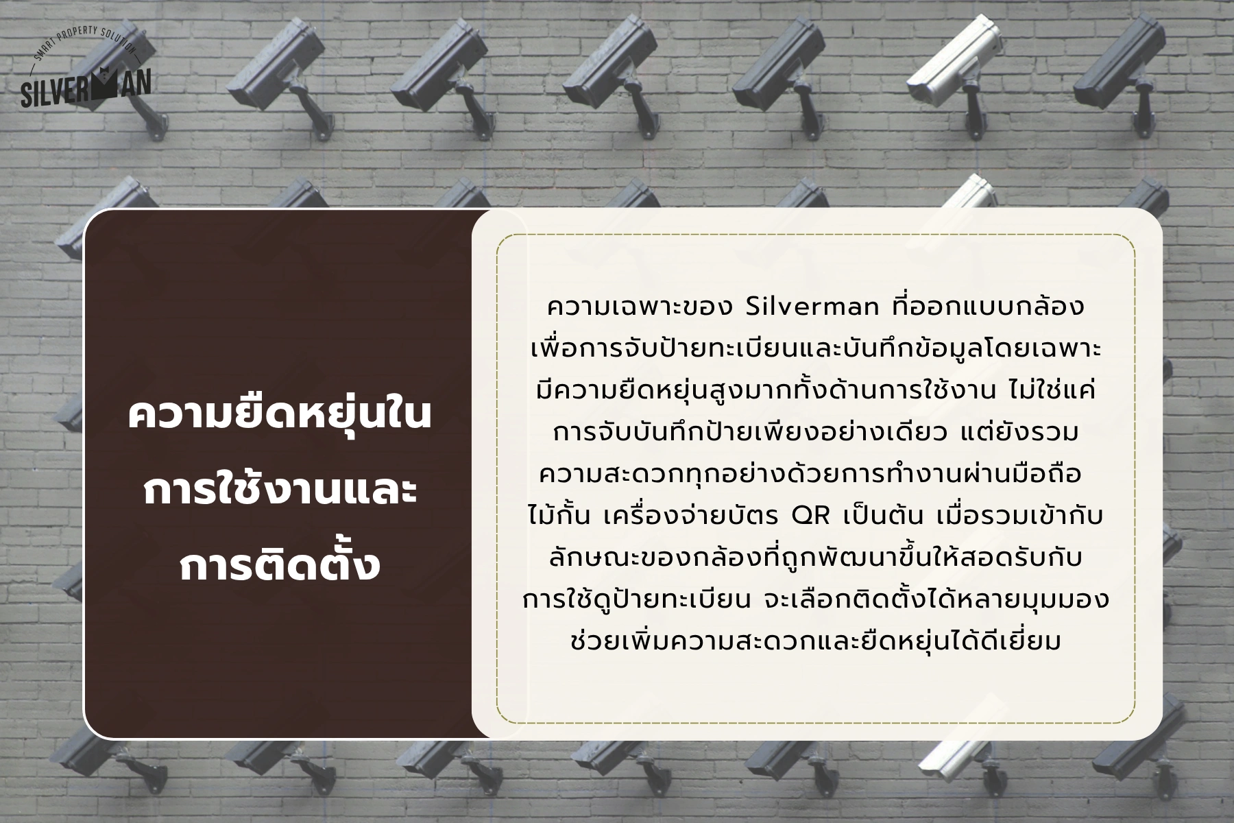 นี่เป็นอีกข้อที่ต้องยอมรับว่าแม้ LPR Camera Hikvision จะทำได้พร้อมประสิทธิภาพน่าพึงพอใจ แต่ด้วยความเฉพาะของ Silverman ที่ออกแบบกล้องเพื่อการจับป้ายทะเบียนและบันทึกข้อมูลโดยเฉพาะจึงมีความยืดหยุ่นสูงมากทั้งด้านการใช้งาน ไม่ใช่แค่การจับบันทึกป้ายเพียงอย่างเดียว แต่ยังรวมความสะดวกทุกอย่างด้วยการทำงานผ่านมือถือ ไม้กั้น เครื่องจ่ายบัตร QR เป็นต้น เมื่อรวมเข้ากับลักษณะของกล้องที่ถูกพัฒนาขึ้นให้สอดรับกับการใช้ดูป้ายทะเบียนจึงเลือกติดตั้งได้หลายมุมมอง ช่วยเพิ่มความสะดวกและยืดหยุ่นได้ดีเยี่ยม