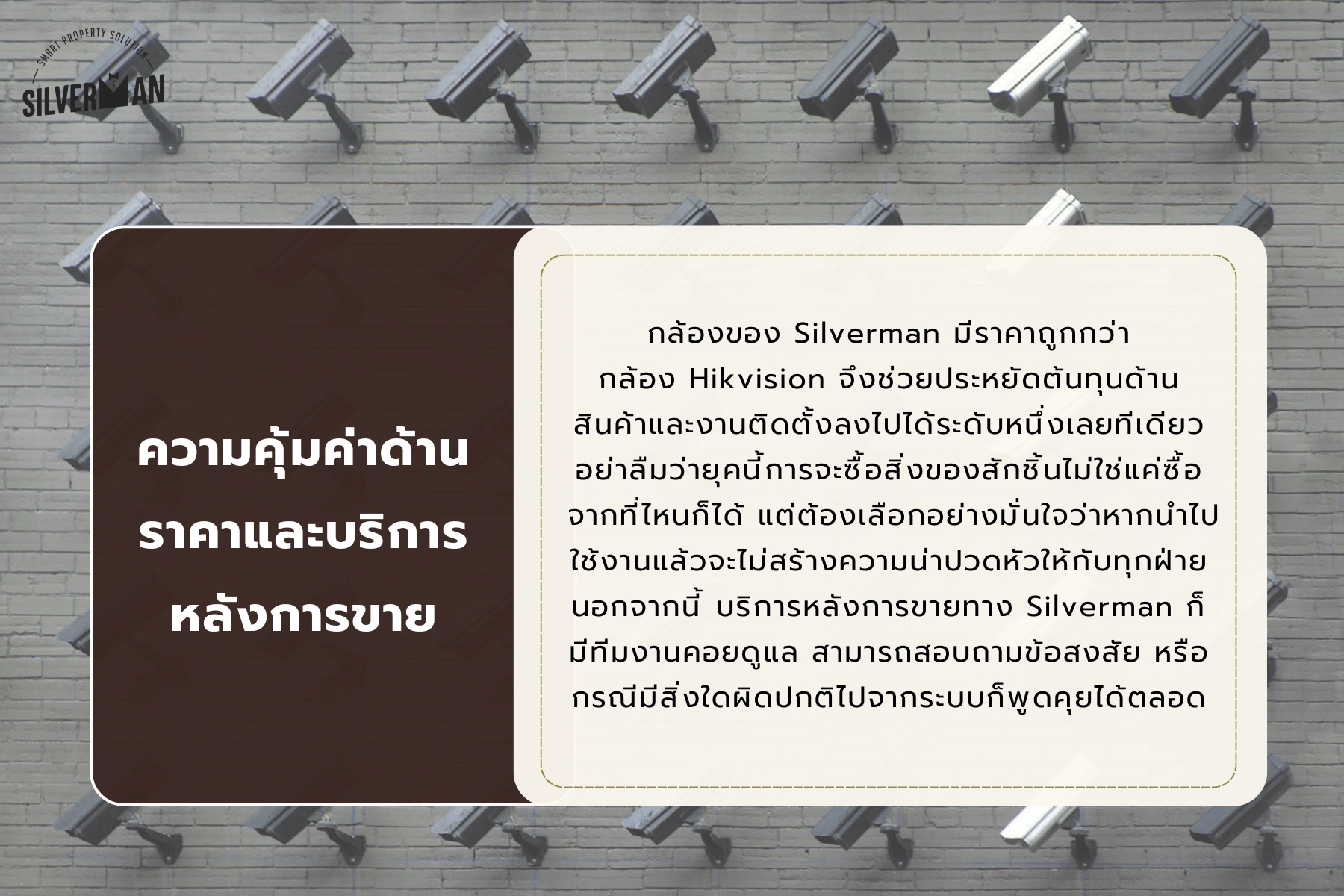 จริง ๆ แล้วทั้ง 2 ยี่ห้อก็มีความคุ้มค่าด้านราคาไม่แตกต่างกันมากนัก แต่สำหรับ Silverman อาจมีราคาถูกกว่าเล็กน้อยจึงช่วยประหยัดต้นทุนด้านสินค้าและงานติดตั้งลงไปได้ระดับหนึ่งเลยทีเดียว อย่าลืมว่ายุคนี้การจะซื้อสิ่งของสักชิ้นไม่ใช่แค่ซื้อจากที่ไหนก็ได้ แต่ต้องเลือกอย่างมั่นใจว่าหากนำไปใช้งานแล้วจะไม่สร้างความน่าปวดหัวให้กับทุกฝ่าย ขณะที่บริการหลังการขายทาง Silverman ก็มีทีมงานคอยดูแล สามารถสอบถามข้อสงสัย หรือกรณีมีสิ่งใดผิดปกติไปจากระบบก็พูดคุยได้ตลอด
